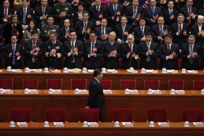 Hszi Csin-ping kínai elnök, a Kínai Kommunista Párt főtitkára az Országos Népi Gyűlés, azaz a kínai parlament évenkénti ülésszakának záróülésére érkezik a pekingi Nagy Népi Csarnokban 2019. március 13-án.