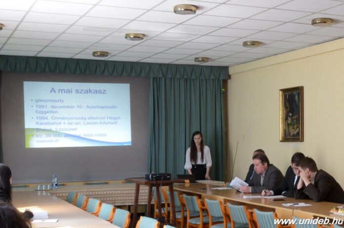 Bukó Barbara előadásában a hegyi-karabahi konfliktus gyökereinek áttekintése után bemutatta a vita jelenlegi állását, a tárgyalások eddigi kimenetelét, középpontba helyezve a térség államainak a konfliktusban megjelenő érdekeit, ellenérdekeit.